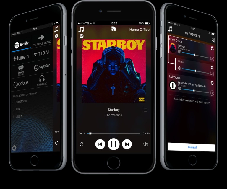 这是一款是支持多房间系统的音箱,也就是说,你可以在不同房间放置多个同样支持该系统的音箱,用对应的手机APP来控制所有的设备,可以让它们同时播放同一首歌,也可以让他们分开播放不同曲目,随你喜欢怎么都行。