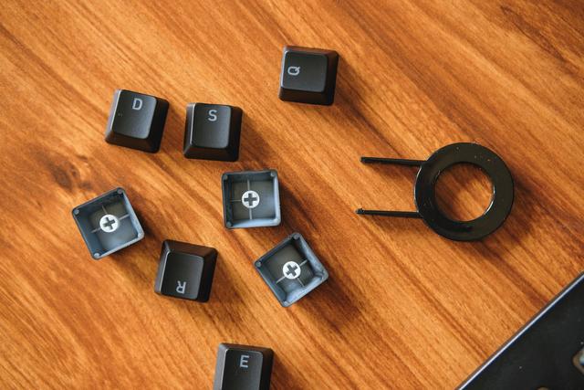 ▲配备的8颗红色亮泽面键帽,在更换上键盘后很醒目,其他的黑色键帽采用了雾面喷涂处理,所以在全新的时候摸起来手感是有点涩涩的,不过比较可惜就是这把键盘的键帽都是ABS材质,好在它的键帽都标准的十字口,如果资金到位的话就自己定制一套专属键帽替换吧。