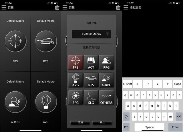 ▲除了RGB灯效控制外,还支持一个叫做即时巨集设定,通过APP预设四组快捷巨集键,就可以让使用者按一下手机一键执行在游戏中预设好的巨集。除此之外,APP还支持设置成为虚拟手柄,让手机当做手柄使用,不过手感度就很一般了,没有真手柄那种手感。