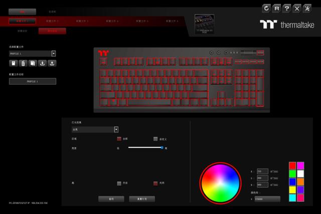 ▲TT X1 星脉 RGB机械键盘作为RGB灯效键盘,自然是不能缺少灯效的调控了,比较有趣的是这把键盘除了传统的PC端软件调节外,还支持手机APP调节灯效。安装好PC端软件后就可以对键盘设置灯效和宏录制等,一共可以实现预设6种配置文件来适配不同场景需求。