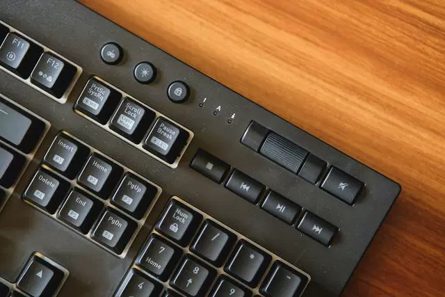 ▲右上角的媒体按键支持:音量拨轮调节、一键静音、播放/暂停、切歌等功能,对于这个功能实用度是比较高的,这样在听音乐的时候就不用来回切换音乐播放器界面来点击操控了。在旁边还有3个圆形按键:游戏模式、背光亮度、锁WIN键。