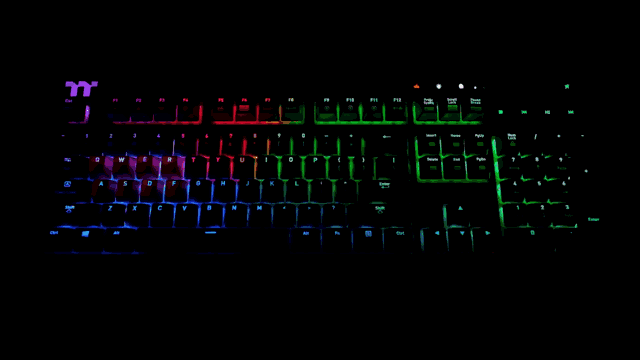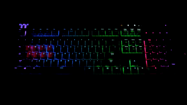 作为RGB灯效键盘自然少不了灯效图了,下面看一下TT X1 星脉 RGB机械键盘的灯效效果图。