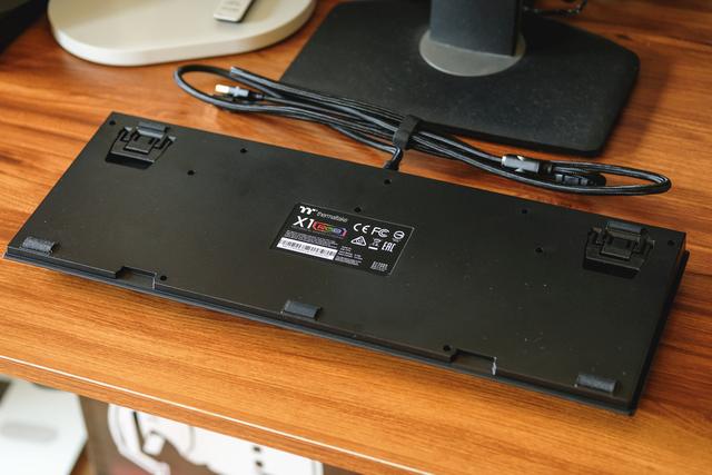 ▲键盘的底部区域是呈弯曲弧度的,可能那时自带了腕托关系,平时使用的机械键盘底部都是垂直平面,垂直平面可以适配大多数的自备腕托,当然TT X1 星脉 RGB机械键盘也是能直接用自备腕托。