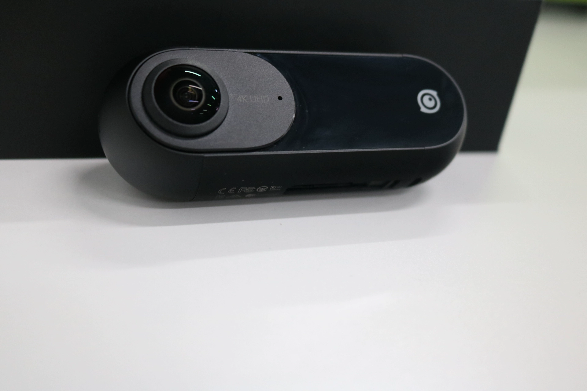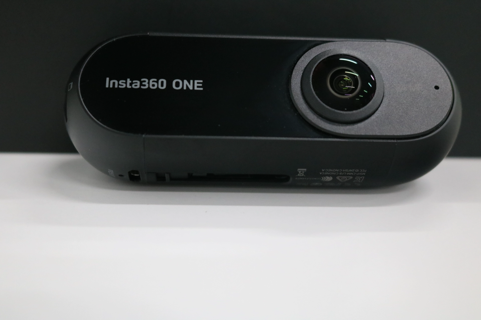 当insta360 ONE的整体机身呈现在我们面前的时候,第一感受就是这个东西十分的小巧精致,一只手就可以稳稳的拿住,拿在手里的感觉也非常细腻舒适。在它的机身上,有前后两个镜头,分别一个位置低一点,另一个位置高一点。圆润的镜头看起来非常灵活。