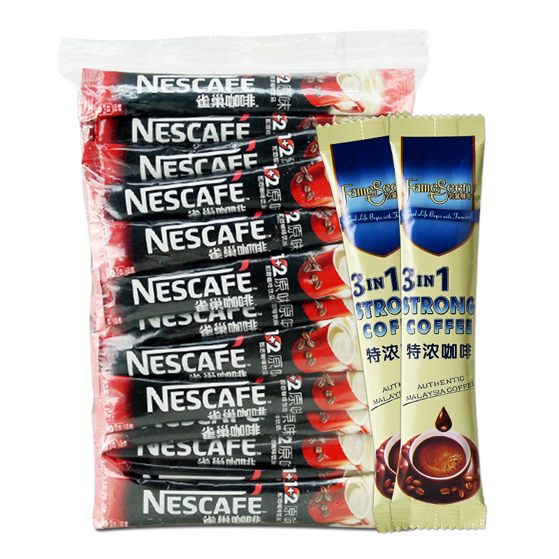 雀巢咖啡1+2原味25送25炭烧特浓共50条装送杯 速溶三合一咖啡粉39.9元