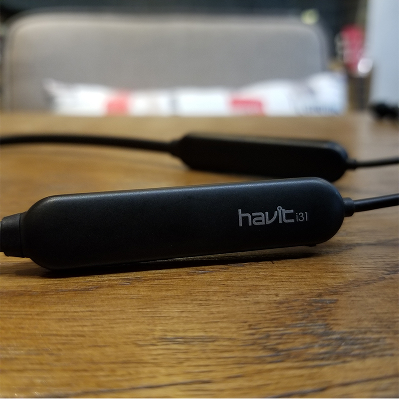 今天这款是海威特I31入耳式蓝牙耳机,颜色是金属黑, 采用绕颈式设计,上面覆有亲肤触感的硅胶材质,具有较好的弹性和变形复原性,可以作很大程度的弯曲,对颈部有极好的贴合,佩戴较为舒适。