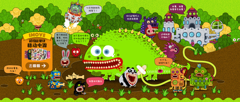 黑鱼这家店主打小怪兽风格手机周边产品,首页就是几张这样的图片,每张的故事情节都不一样呢。