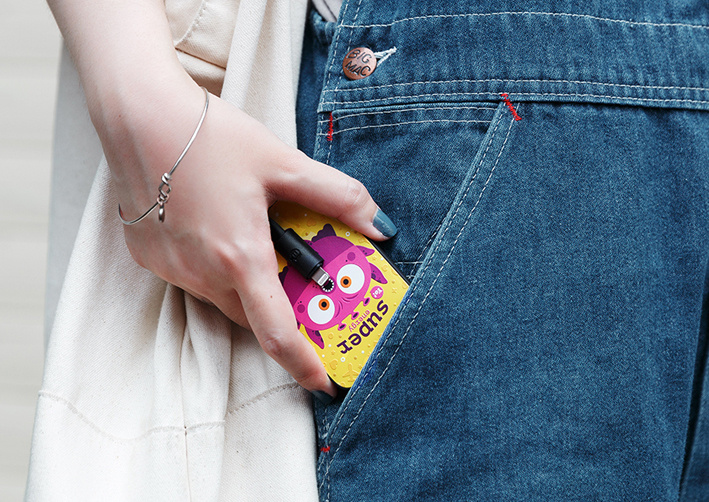 这款小怪兽充电宝是店铺里销量最高的。体积只有90×60×10mm,重75g,小巧轻便。但对容量也相应的会有限制,3200mAh,只能作为应急使用了。表面的图案是立体的,实物看起来会更生动一些。