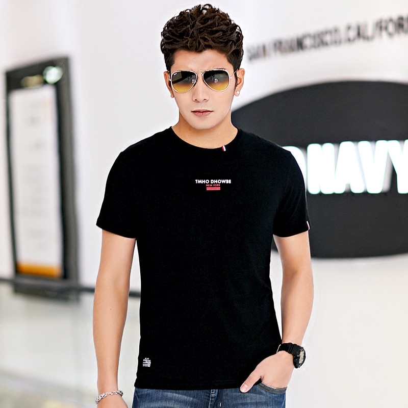 短袖男士2018新款韩版修身t恤印花圆领潮流半袖体恤青年百搭男装49元