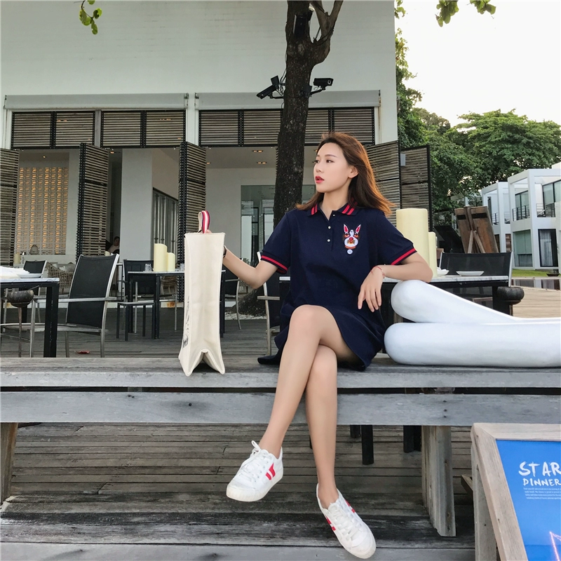 ins超火的连衣裙韩版短袖裙夏装2018新款女T恤裙宽松学生polo裙子79元