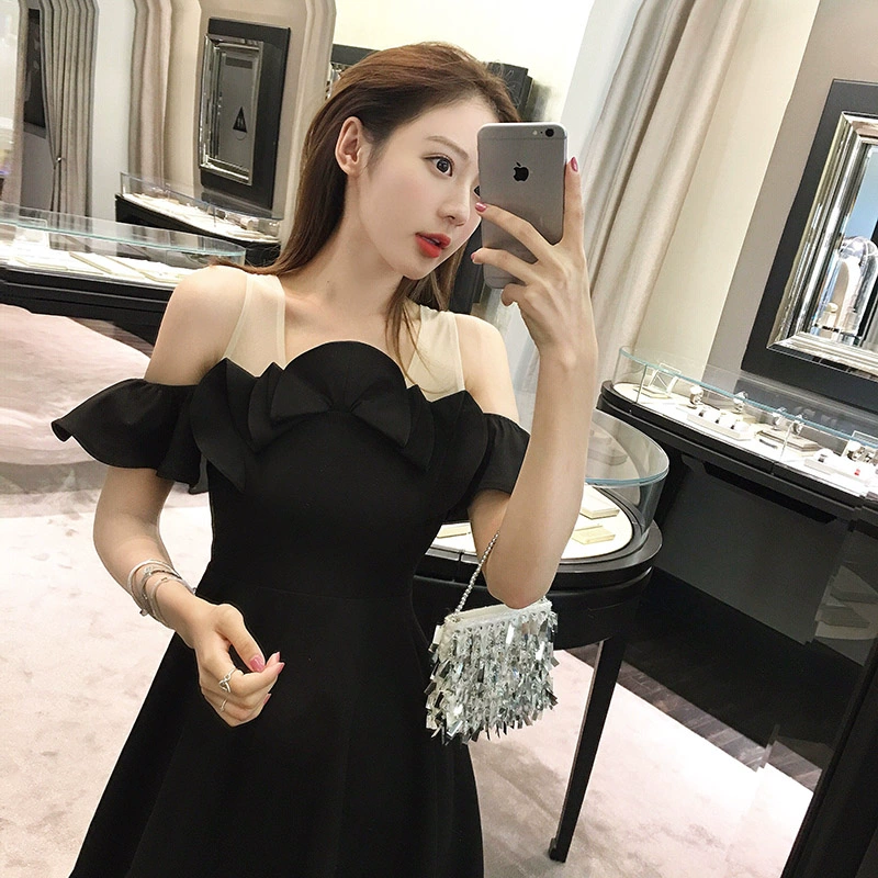 FAYEYE 2018新款冷淡风露背连衣裙女夏赫本风小黑裙长款闺蜜装129.9元