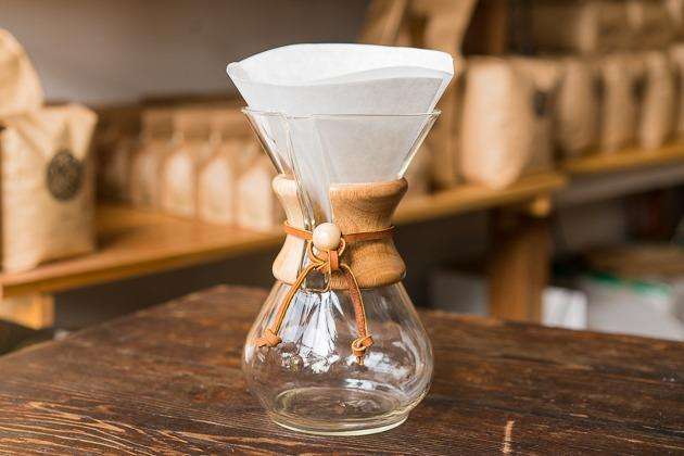 Chemex这款滤杯形状和圆锥形较为类似,只是使用时需使用特制滤纸直接折放。 特制滤纸较厚,让萃取水流时间变得较长,也不会吸去咖啡油脂,让萃取出的咖啡口感厚实。