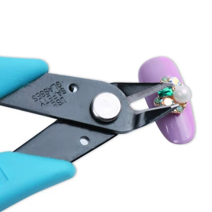 我们比较常选用的工具就是废弃的死皮剪。但是有一点就是,死皮剪剪在比较厚的胶上面会容易打滑,容易伤到手,所以并不是很推荐使用死皮剪来剪胶。在这里给大家介绍专门剪饰品的卸钻钳。这种卸钻钳刀柄长,刀嘴尖,只需要一下,就能使连接甲面和饰品的胶分开。