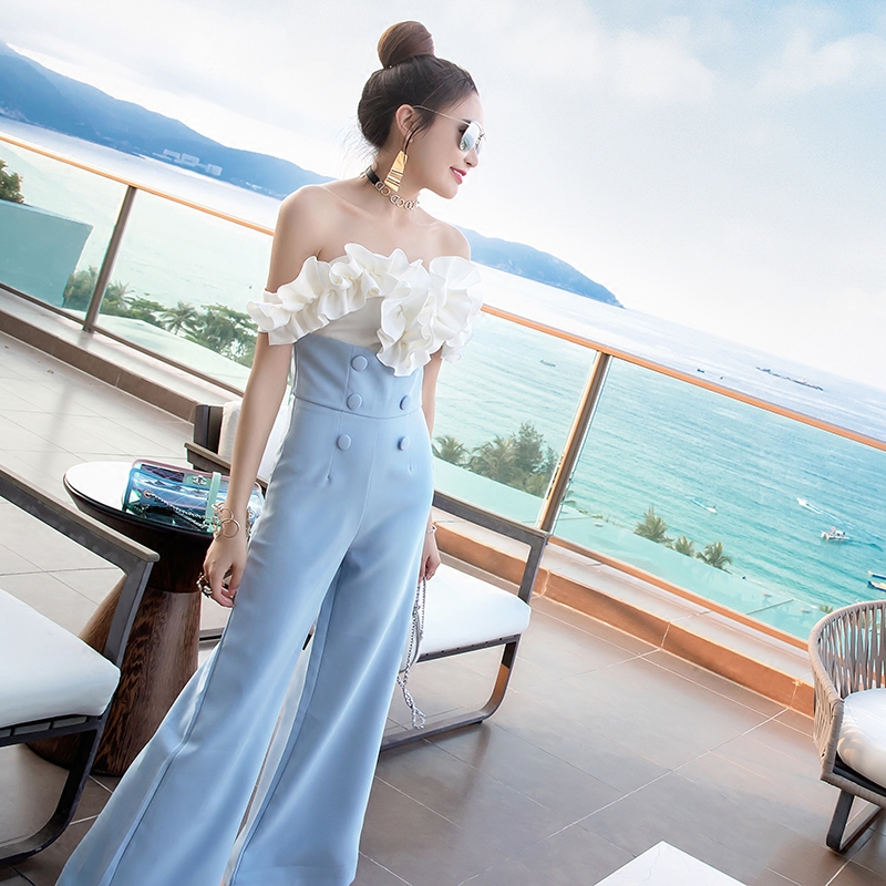 气质名媛女神套装女装夏装2018新款高腰阔腿裤漏肩上衣时尚两件套