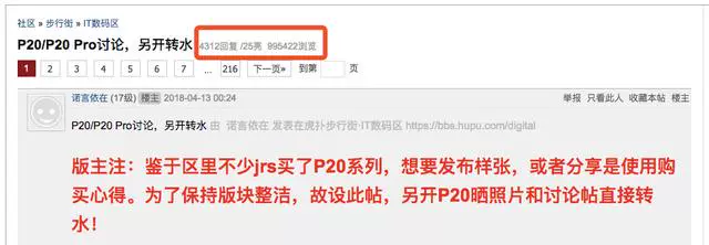 于是,我前天在一个体育 App(虎扑)上竟然也看到了华为 P20 PK 单反的文章,接近 100 万浏览量。