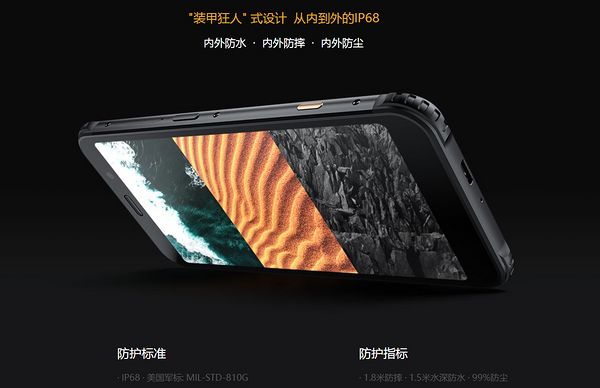 AGM 为了提升抗摔性能,X3在机身四个R角处加入了橡胶材质,支持1.5米抗摔。AGM难能可贵的是在保证了户外手机防护性能的同时硬件配置看齐目前主流旗舰产品,并且对机身厚度以及重量也做了进一步优化,更符合目前主流消费人群审美的外观设计。