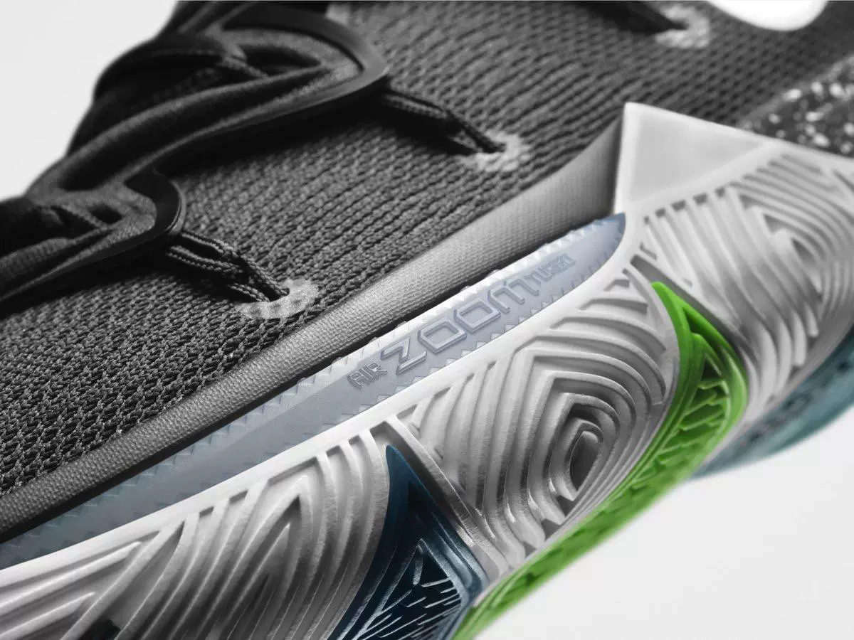 在最受关注的科技配置方面,全新的 Kyrie 5 搭载了超大的升级版气垫 Zoom Turbo,而它的位置也一改欧文正代系列后掌 Zoom Air 的配置习惯,改而出现在前掌的位置,以此助力欧文在运球、变向以及突破攻击时打出更加精彩的表现。