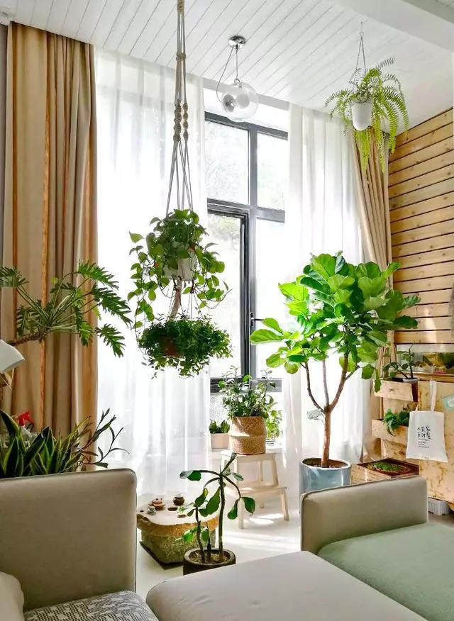 3.除了爬藤架和铁丝网,还有一种方法,能迅速打造一面绿植墙,那就是防水布做的种植袋,把一排排的口袋装满土壤,种上绿萝、吊兰、蕨类等花卉,秒变成绿植墙!