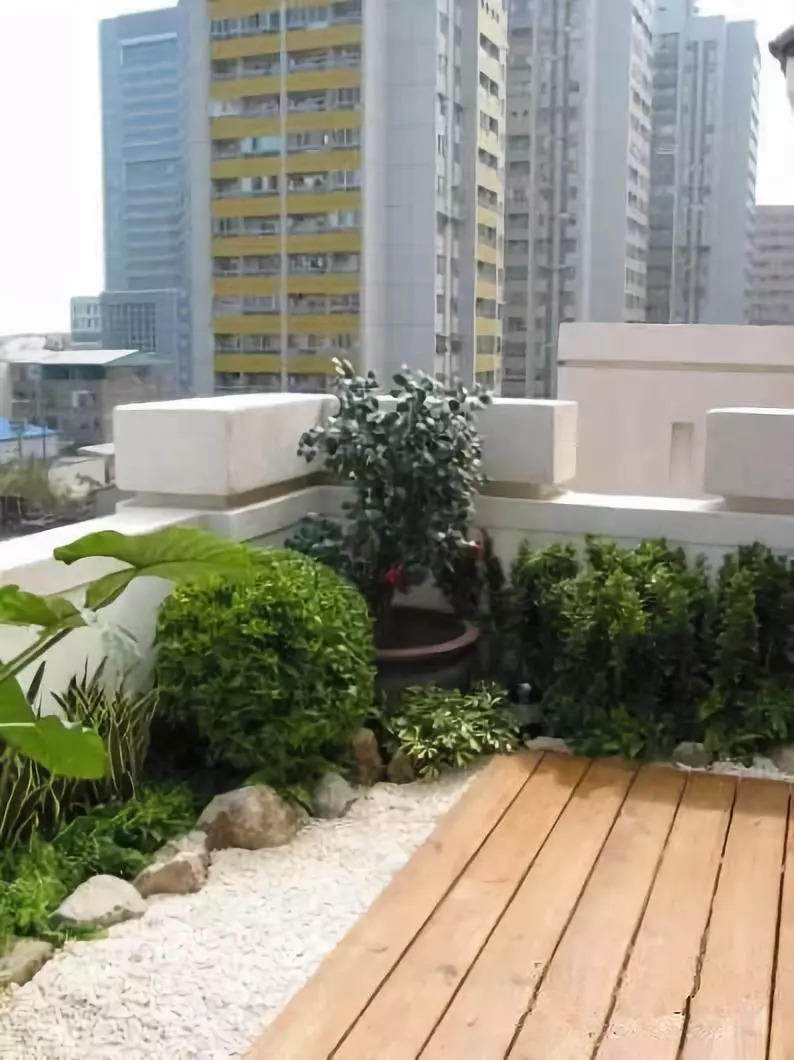如果担心水泥砌的种植带,阳台承重会有问题,可以用石头在墙边围上一圈,摆上喜欢的花草,打造成一个简单的花境!