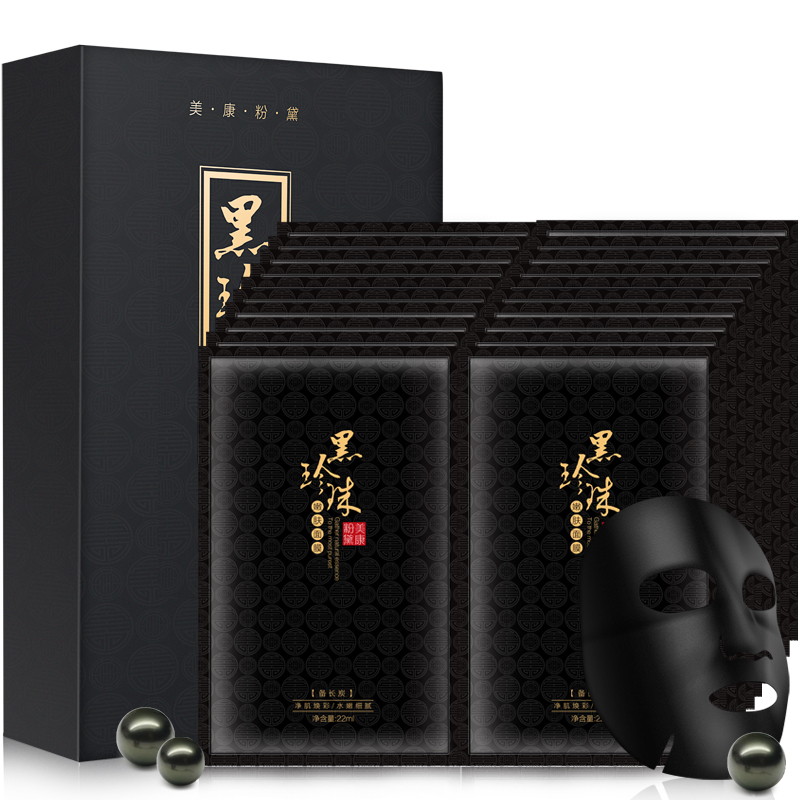 美康粉黛黑珍珠黑面膜20片 补水保湿清洁亮肤面膜贴正品49元