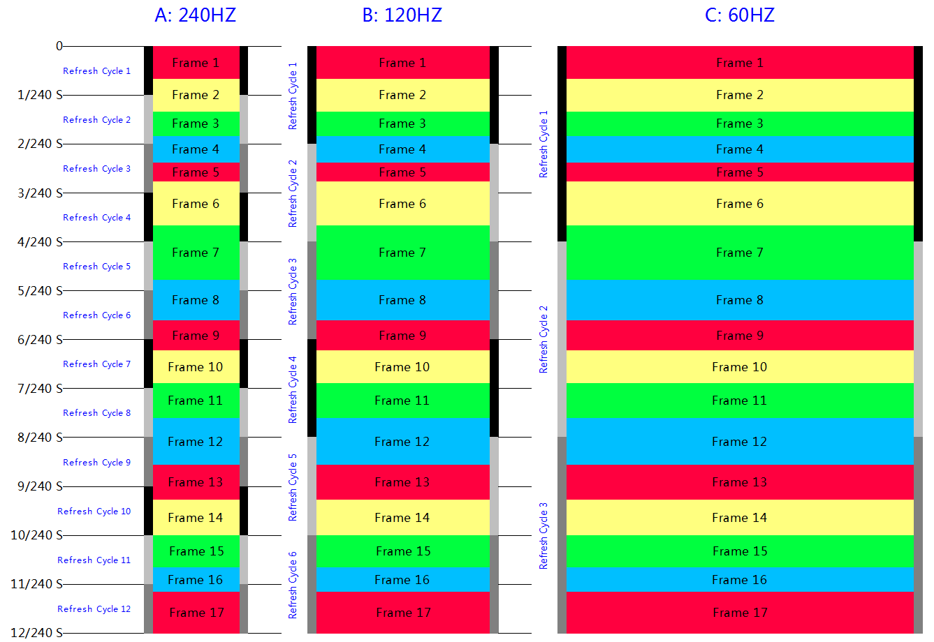 同样的,只有当帧数和刷新率相同,运动模糊才会保持稳定,同时,同时提高刷新率与帧数的情况下,运动模糊才会更低。