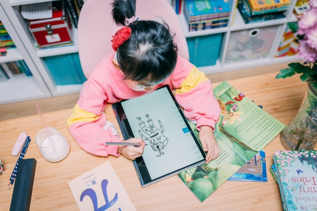 14寸FHD IPS高清屏,窄边框设计,84%高屏占比,提供更高的清晰度和更好的视野,相比传统的手机和平板,更能保护孩子的视力。同时这块屏幕支持触控功能,随机附带4096压感级别触控笔,可以模拟真实的书写效果,孩子可以像在课堂一样记录笔记,同时配有B&O音效,带来沉浸式的学习体验。